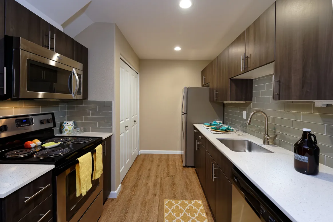 Take a moment to get a sense of how unique Latitude really is. A thoughtfully curated selection of amenities and features like our sparkling pool, basketball court, fitness center, and pet spa add ease and enjoyment to your lifestyle. You’ll notice an exclusive feel as you come and go with gated access, or if you prefer convenient public transit, TriMet services are within walking distance. Inside our townhomes and apartments, you’ll be a picture of cozy comfort on the sofa near the crackling ambiance of your in-home fireplace. At Latitude apartments near Sunnyside, there’s more to love everywhere you look